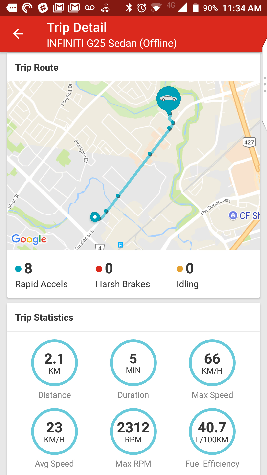 It is worth noting that while your phone will give you all these details, the Rogers Smart Drive does not need the phone to work. It works with a central server, so no matter what device you jump onto or use, the data will be displayed when you need it. Unlike many Bluetooth-based OBDII devices, the data is not lost if your phone is not connected. Also, wherever the car goes, you will know. Since it is constantly connected to the Rogers network, if you lend your car to your kids, or even just want to ensure your husband is safe, you only need to log into the app and check where it is in Canada/US, something I used to find where my car was parked in downtown Toronto after losing track of street names. As I said, it is something you never would think you needed until you try it.