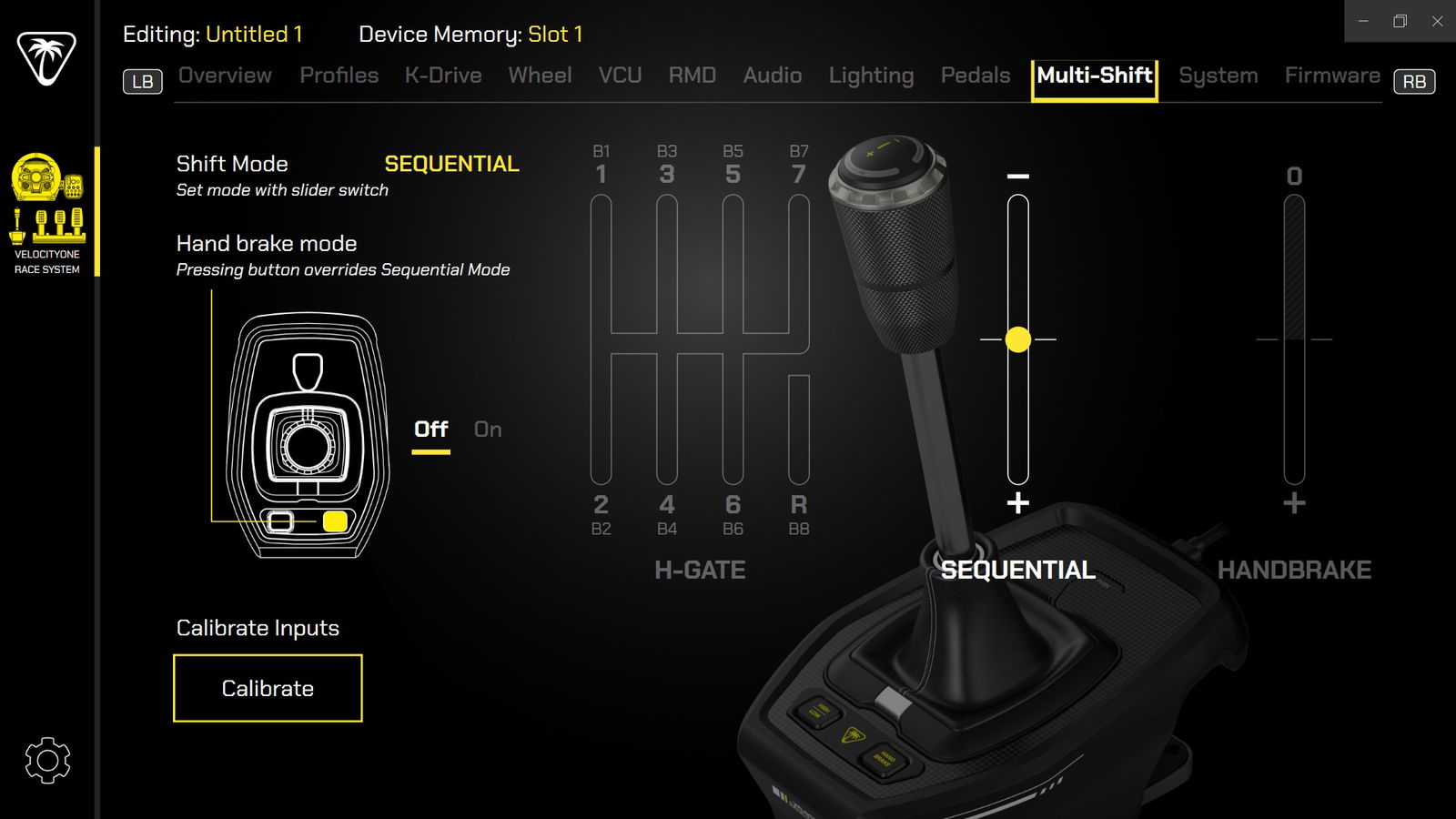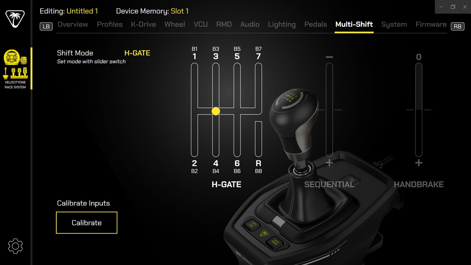 The VelocityOne Multi-Shift is also compatible with the Turtle Beach VelocityOne Tuner app for firmware updates and calibrating the gears for each respective pattern. Also, while using the VelocityOne Race base, it shows you in the corner of the screen a little shifter icon to indicate that it is connected to the base. A nice little touch, I thought, to show exactly what is being used.