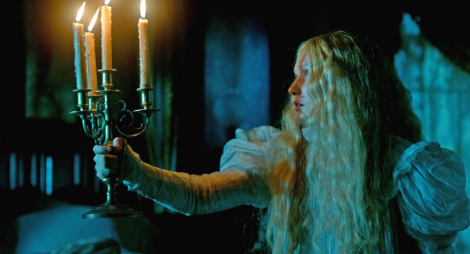 The actors commit fully to the stylized playground that Del Toro provides. The costumes and his carefully arranged frames say everything we know about the characters emotional state silently and visually, yet the actors go big anyways (because in a movie like this, they may as well go home otherwise). Wasikowska does her usual waif-turned-strong heroine routine only on an even bigger scale than she did for time Burton, while Hiddleston proves that there’s no one better in the business at suggesting something sinister beneath charm and a smile. However, it’s Chastain who steals the movie. Even in profile she plays her dastardly character in broad strokes, yet clearly revels in the chance to depart so fully from her usual persona. She’s a full on movie monster and not even in a wolf-in-sheep’s-clothing way, more in a wolf-in-shark’s-clothing way.