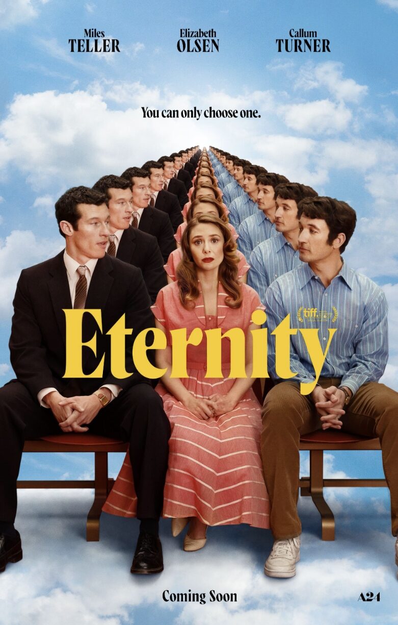 Eternity explores a hilarious “there is no heaven or hell” afterlife. After a husband and wife, Larry (Miles Teller) and Joan (Elizabeth Olsen), both die within a week of each other, they are forced to choose the right afterlife for them. There’s only one catch: Joan’s first husband, Luke (Callum Turner), who died in the war, has been waiting 67 years for her to show up. Now Joan must choose who she wants to spend an eternity with, her husband of 65 years, or the man she never got a chance with.