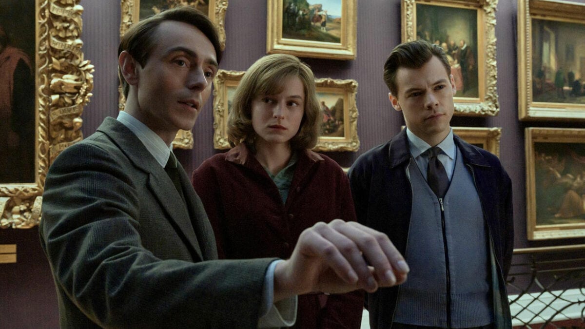 Looking back at the 50s, we are greeted by Tom (Harry Styles) walking down the beach to talk to Marion (Emma Corrin). As they catch up, we get a sense of what everyone wants to do with their lives. Tom Burgess talks of his life as a police officer, and Marion of her dreams of becoming a teacher. It is very much what you would expect from a British period drama, and works to set the stage for their eventual relationship, and things get mixed up even more when they both meet Patrick Hazlewood (David Dawson), a museum curator who Tom knows through his duties as a police officer.