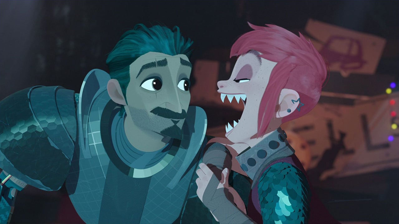 Now to address the decidedly pink 500-pound gorilla in the room; if it weren’t already obvious, Nimona also sets itself far apart from other animated films of its ilk by proudly wearing its LGBTQ2S+ heart on its sleeve. More importantly, it does so without having to club anyone over the head to communicate it. Much like the 2015 webcomic, the film is an allegory for several topics such as homophobia, race, acceptance and gender non-conformity, and there’s no doubt that the movie would be greatly diminished without these themes.