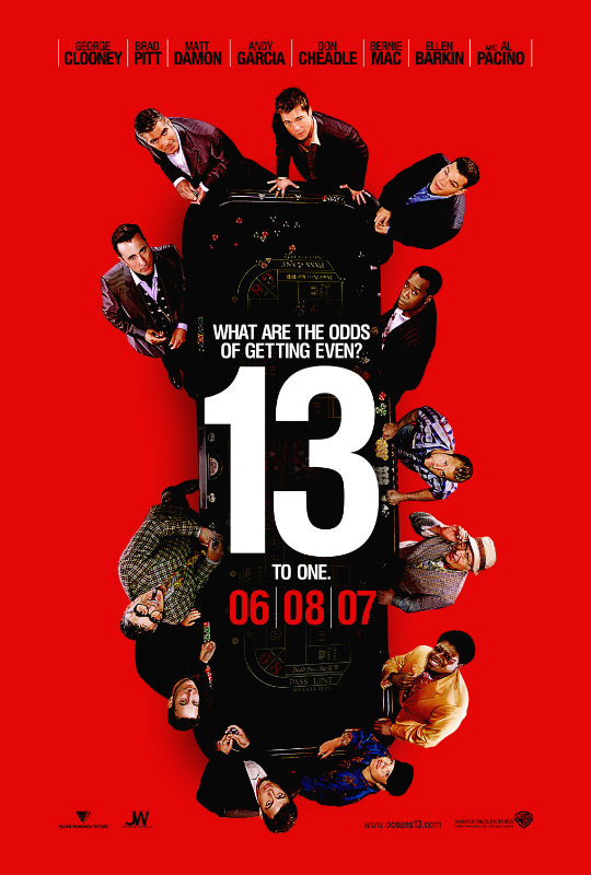 What do you know? A sequel with a three in it that’s genuinely satisfying and complimentary to the original. Ocean and his crew of cons come back in style with 13, washing away any bitter after taste following the supremely underwhelming Ocean’s 12. Actually, better is a rather strong word, as the film was mildly entertaining, but the previous film seemed to spend a lot of time talking about a heist rather then ever actually showing us the heist being done. (Except for the montage at the end of course.)