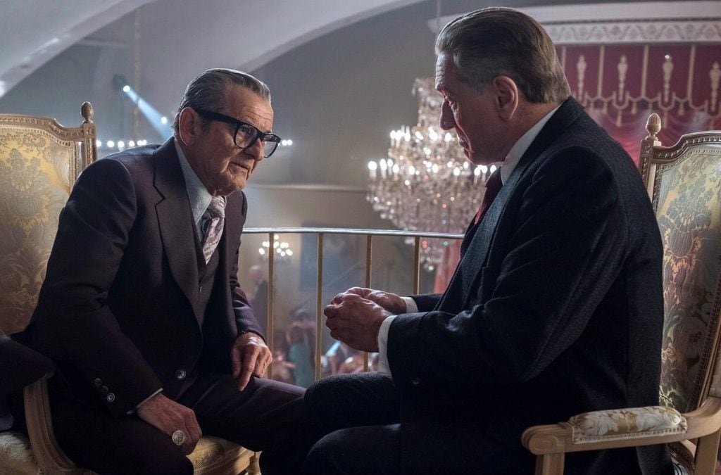 The Irishman can be tough to follow at first. Told with a flurry of in media res from the perspective of an elderly Frank “The Irishman” Sheeran (played by a spirited Robert De Niro), our protagonist recalls the day he became involved with the mob following his gig as a delivery truck driver. It’s a common theme from Scorsese, allowing him to break the rules a bit with some fourth wall chicanery (again, that comedy angle seeping in) coupled with a bit of classic unreliable narrator. True to form, Marty’s new opus is a slow burn. How slow? Well a lot happens in-between an array of captivating performances, but it’s about a three hour burn until it gets to its riveting 30 minute final act. Yes you read that right: The Irishman is three and a half hours, but it sure doesn’t feel like that most of the time.