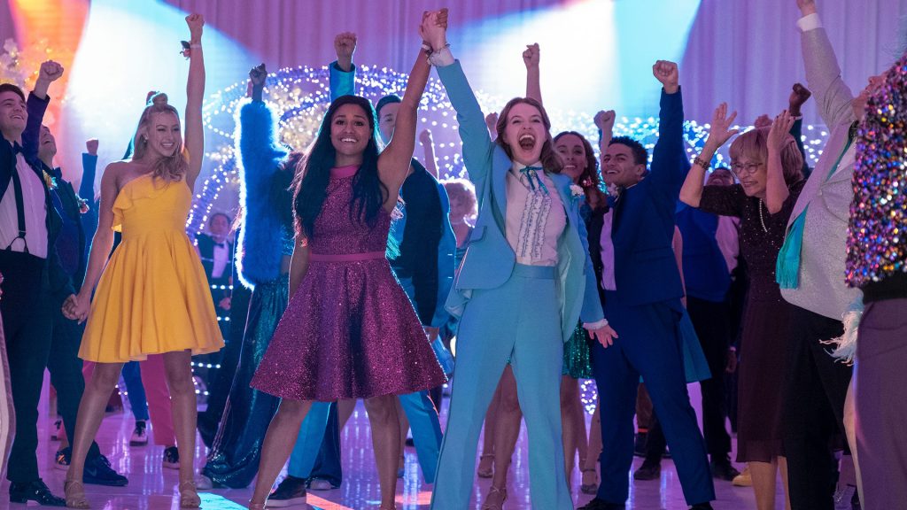Based on the Broadway original, The Prom’s spotlight is centered on a high schooler named Emma, who was denied access to her prom for being gay. As soon as four washed-up stars (a star-studded lineup of Meryl Streep, James Cordon, Nicole Kidman and Andrew Rannells) hear about it in the news, they seize the opportunity for good publicity.