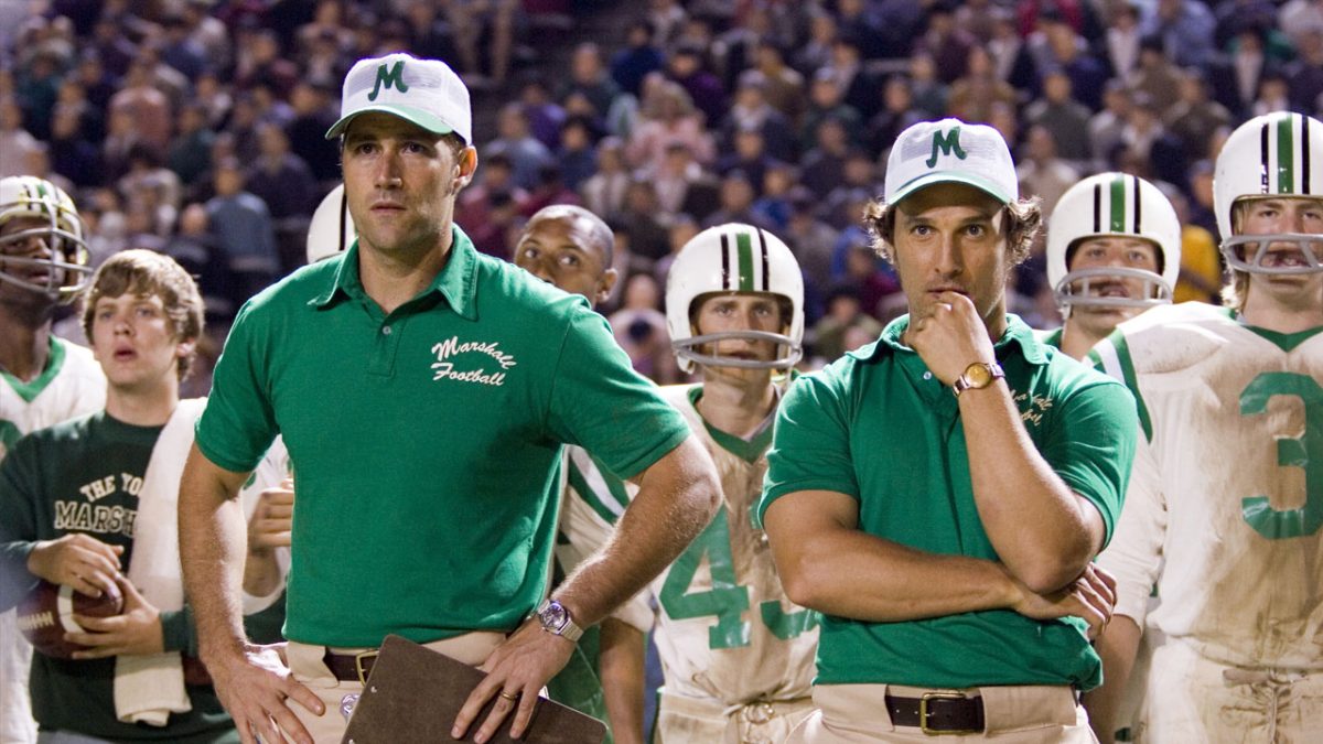 Enter Jack Lengyel (Matthew McConaughey), a young coach with some folksy notions and a down-home charm. Being the only candidate to show interest, he’s hired and begins about setting himself the task of rebuilding the football team and school spirit. Lengyel recruits back Red Dawson (Matthew Fox), the only surviving member of the coaching staff, and then with President Dedmon’s help, they convince the NCAA to let them play freshmen on their Varsity team.
